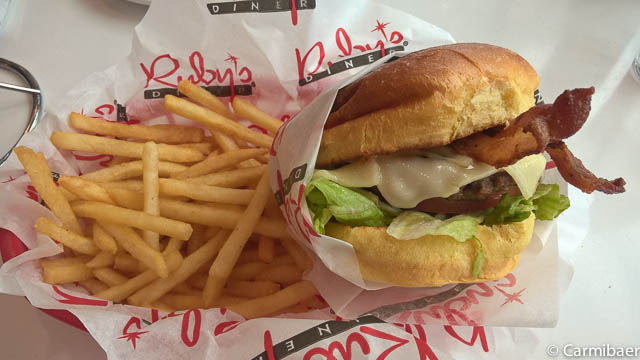 Zurück in Laguna Beach kehren wir bei Ruby’s Diner ein und essen eine Kleinigkeit. Hier fühlt man sich gleich in die Sixties zurückversetzt. Auch das Essen war lecker. Für Knut gibt es einen Burger und für Carmen Chickenteile.