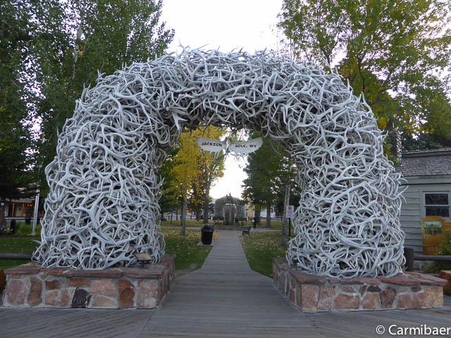 Um kurz nach 6 h sind wir wach und haben uns in Ruhe fertig gemacht. Und um 7:40 h fahren wir los in den Park. Es ist noch verdammt frisch mit 1 Grad. In Jackson halten wir am Elk-Arch an, da jetzt hier noch nix los ist.