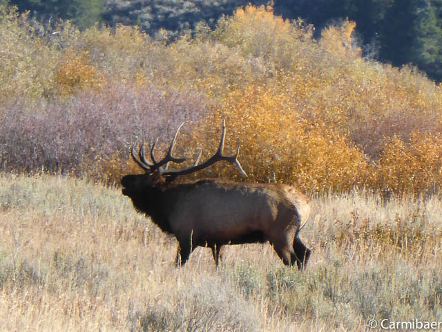Kaum ein paar Meter gefahren sehen wir diesen schönen Elkbullen kurz vorm Jackson Lake Dam.