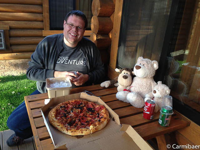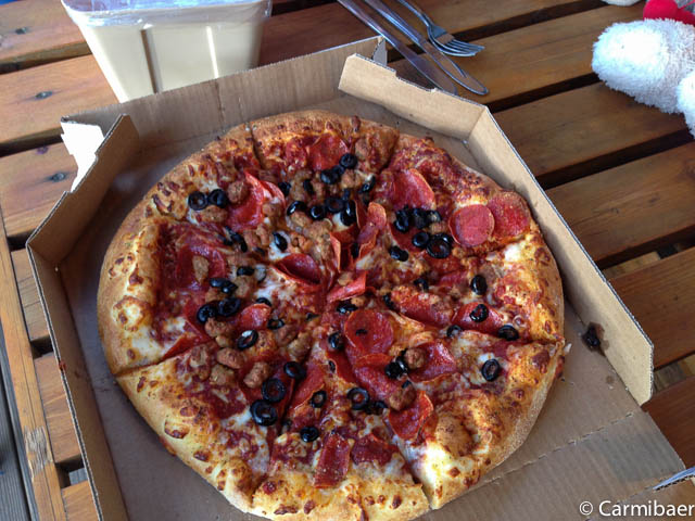 Um 18 h holen wir uns Pizza bei Domino's. Diese ist wie immer lecker und riesig. So haben wir alle etwas davon abbekommen.