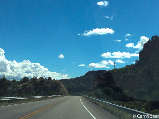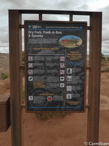 Um 12:45 h biegen wir auf die Hole in the Rock Road ab und fahren diese bis zum Dry Fall Trailhead.