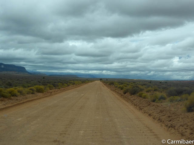 Kurz bevor wir wieder Teer unter den Reifen haben fängt es an zu regnen. Demnach war es die richtige Entscheidung, die Chris getroffen hat.