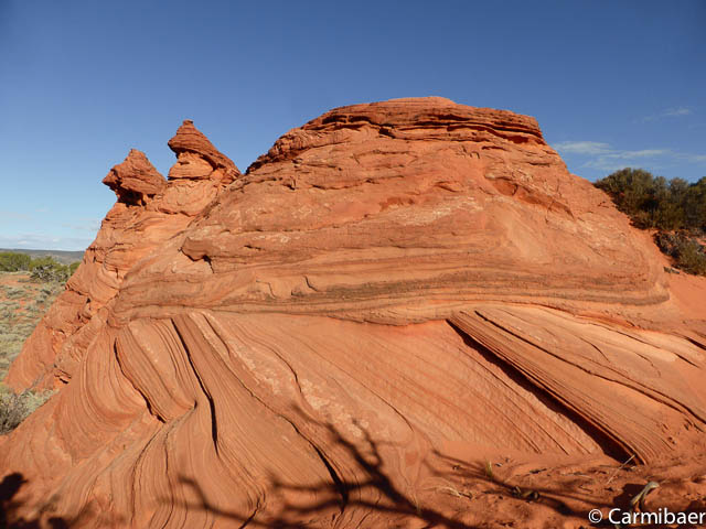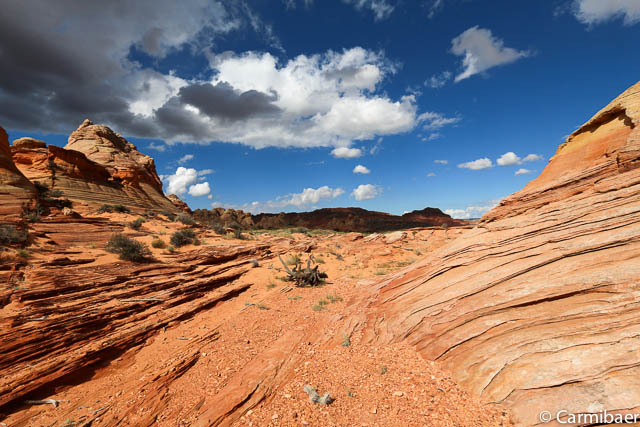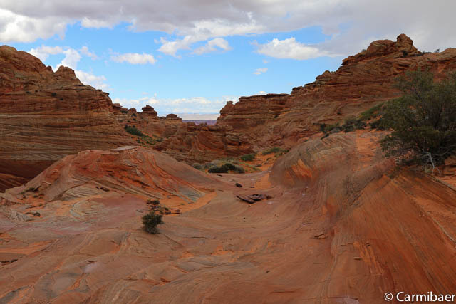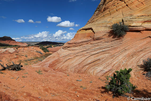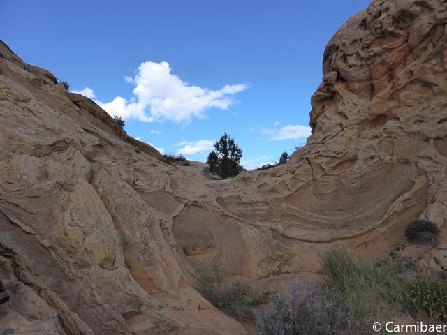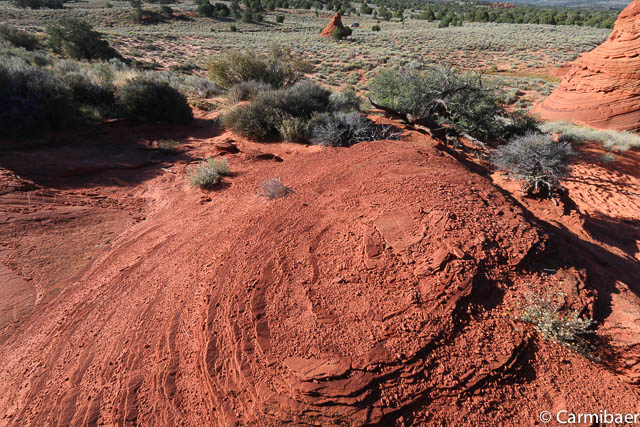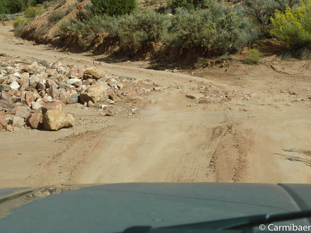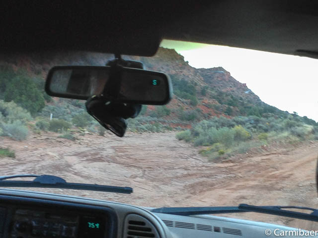 Hier nähern wir uns wieder dem Buckskin Gulch. Es ist schon echt nicht einfach da durch zu fahren, aber Steve meistert es ohne Probleme. Auf der anderen Seite sehen wir noch ein paar Autos vom morgen stehen. Hier sind tatsächlich die Leute losgelaufen, die zur Wave wollten. Das wäre mir echt viel zu weit gewesen. Nochmals drei Meilen extra zu laufen.