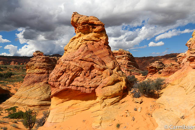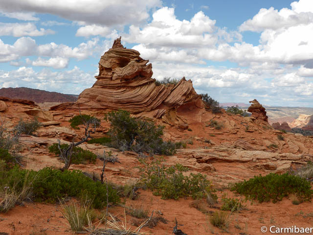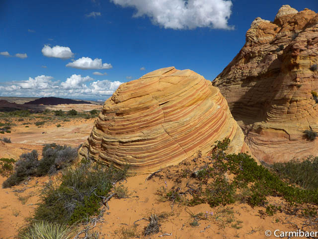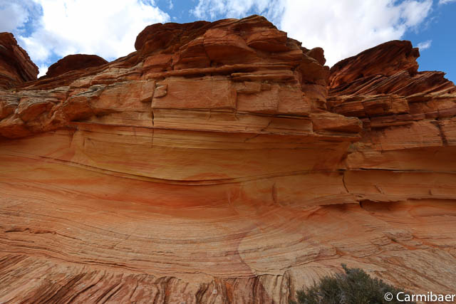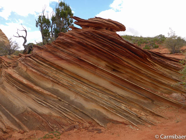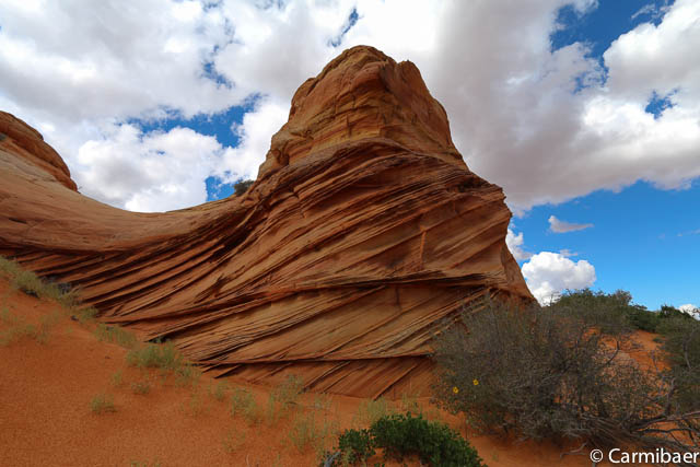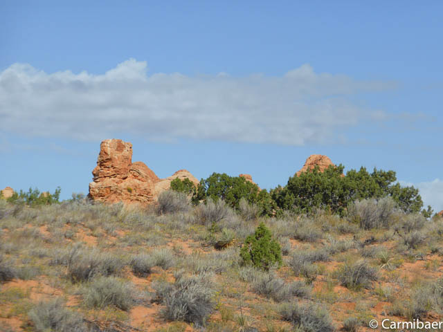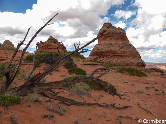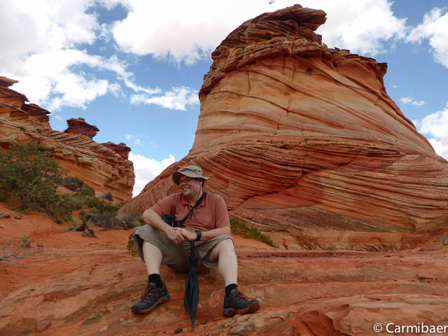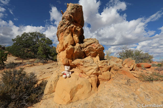 Als erstes halten wir am Paw Hole Trailhead, wo wir ungefähr 20 Minuten Zeit haben. Eigentlich fährt Steve so gut wie nie hier vorbei auf der Tour, da die Strecke zu sandig ist. Aber da es erst kürzlich geregnet hat haben wir Glück und kommen auch hier vorbei.