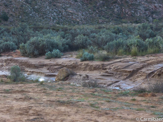 Und wieder sehen wir hier ein wenig Wasser stehen. Das kommt wohl nicht häufig vor, wie Steve uns mitteilt. Damit haben wir ja doch echt Glück, auch wenn wir schon ein paar Tropfen abbekommen haben.