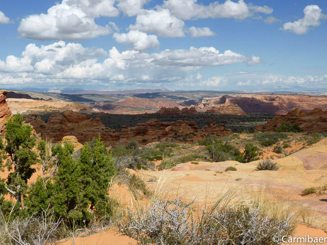 Von hier hat man einen herrlichen Blick über das ganze Gebiet. Die Sicht ist heute so klar, dass man bis zum Bryce Canyon schauen kann.