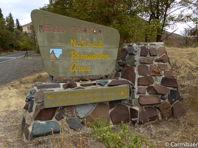 Jetzt fahren wir den Hells Canyon Byway. Leider fängt es etwas zu regnen an und es gibt viele Wolken.
