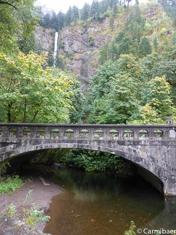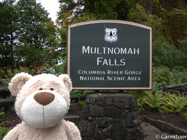Um 11.04h erreichen wir die Ausfahrt 35, wo es u.a. zu den Multnomah Falls geht. Am Horsetail Fall halten wir nicht und fahren weiter bis zum Multnomah Fall. Hoffentlich hört es noch ganz auf zu regnen. Es fällt gerade nur ein vereinzelter Tropfen. Ich mag die Fälle doch gern aus der Nähe sehen. Aber Regen mag ich nicht. ![]()