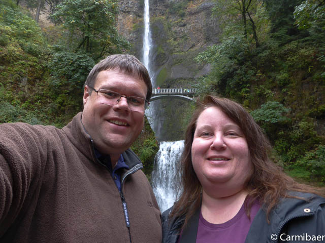 Um 12:00 h sind die beiden wieder bei uns am Auto und der weitere Weg führt uns zum Vista House. Aber hier fängt es keine Minute später an zu schütten und die Sicht ist mehr als bescheiden.