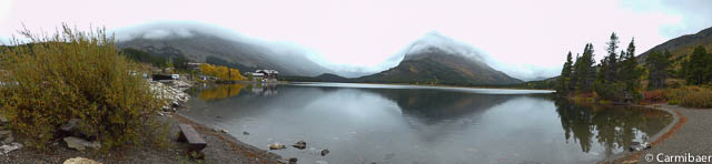 Am Many Glacier Hotel haben wir ein wenig die Aussicht genossen. Leider hat sich der Nebel nicht ganz verzogen, aber immerhin sehen wir jetzt wieder mehr als noch vor gut einer Stunde.
