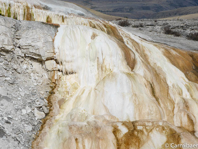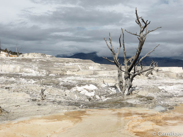 Am Eintrittshäuschen haben wir heute auch unseren Ausweis gebraucht. Bis jetzt meint es der Wettergott gut mit uns. Es ist trocken. Hoffen wir mal das es so bleibt. Als erstes geht es im Mamoth Hot Springs ins Visitorcenter.