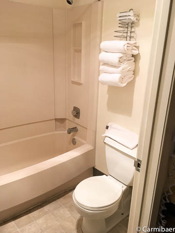 Carmen ist gegen 5:00 h wach und kann nicht mehr schlafen. Wir sind dann um kurz nach sechs durch die Dusche wach geworden. Carmen wollte nun dringend duschen. Danach hat sie die Taschen neu gepackt und um 7:05 h sind wir zum Frühstücken runter. Irgendwie ist es schon lange her, als sie die letzte Dusche hatte. Zumindest hat sie es behauptet.