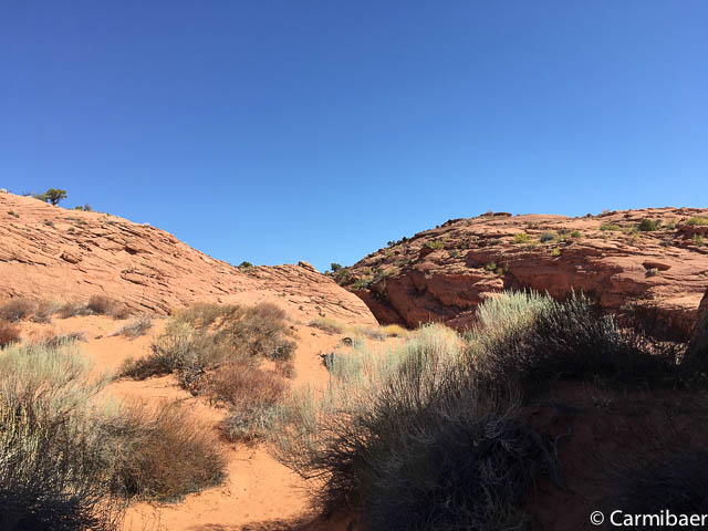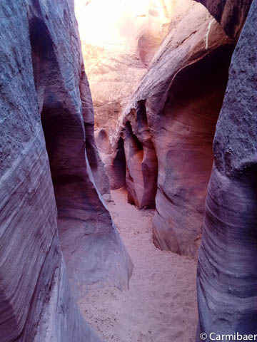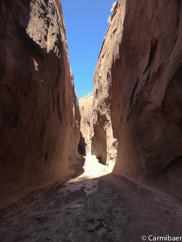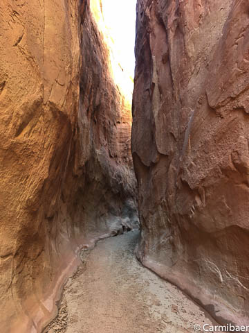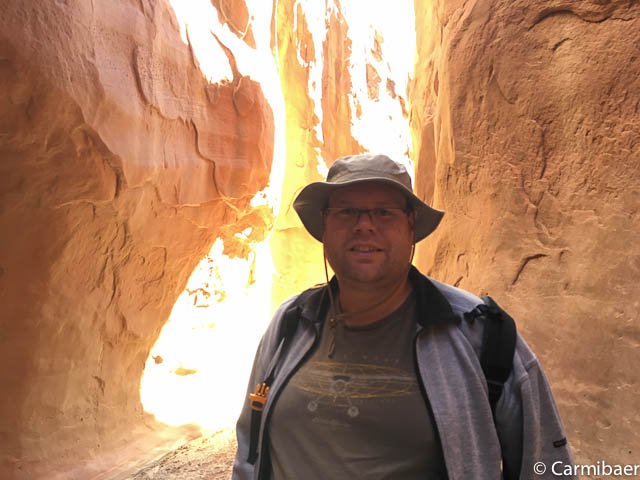 Jetzt wollen wir noch zum Spooky Canyon, wenn wir schon mal hier unten sind. Weit ist es nicht, aber der Sand und die Sonne sind schon heftig. Denn es gibt hier keinen Schatten. Und wie ihr wisst, kann Carmen ja keine Sonne ab.