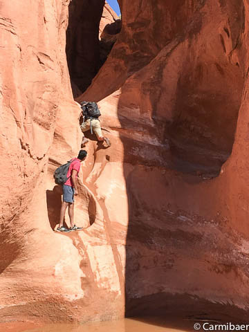 Das war gar nicht so lange. Wir waren 2 1/2 Stunden unterwegs. Allerdings haben wir den Peek a Boo komplett ausgelassen. Aber die Kraxelei wäre nix für uns gewesen. Eigentlich gut so, dass da Wasser vorm Eingang gestanden hat.