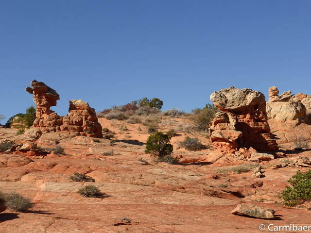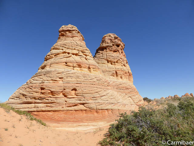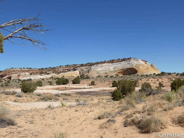 Und die Fahrt geht um 13:10 h weiter. Jetzt geht es noch zur White Pocket. Das ist letztes Jahr irgendwie vergessen worden. Der Weg dorthin ist mehr als bumpy. Um 13:55 h sind wir am Trailhead der White Pocket angekommen.